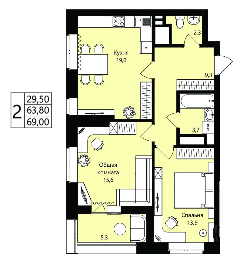 Общая площадь63,8 м²