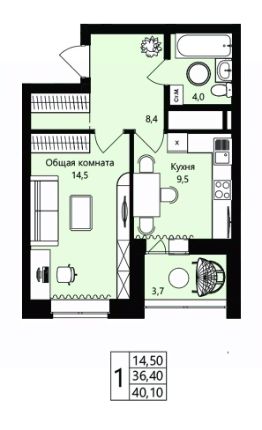Общая площадь36,4 м²
