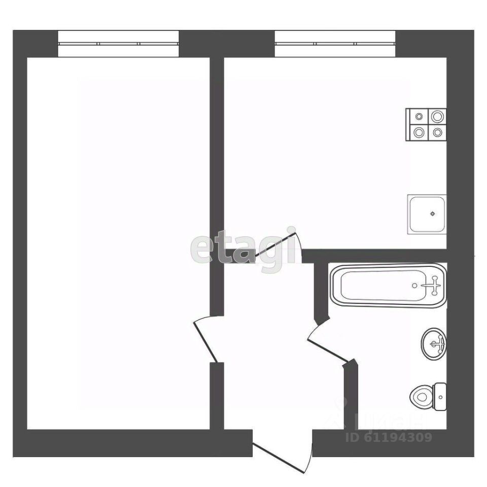 Общая площадь 33,4 м2.
