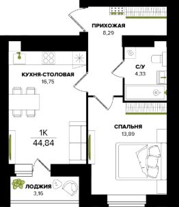 1 комнатные квартиры - от 39,6 кв. м. до 44,8 кв. м.2 комнатные квартиры - от 55,4 кв. м. до 62,4 кв. м.3 комнатные квартиры - 71,44 кв. м.
