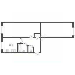 Продается двухкомнатная квартира площадью 44,5 кв. м на первом этаже кирпичного дома.