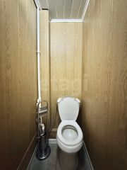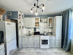 Практичное решение — раздельный санузел, а ванная комната полностью облицована кафелем. Просторная кухня площадью 10 м² служит удобным помещением для приготовления пищи и совместных трапез. Важным преимуществом являются новые современные стеклопакеты во всех жилых комнатах.