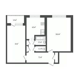 Комнаты изолированные: зал 16.6 кв. м, спальня - 14 кв. м с выходом на застекленный балкон. Просторный коридор 7 кв. м позволит Вам разместить большой шкаф. Также имеется вместительная кладовка.