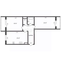 Отопление крышное, что позволит прилично сэкономить на услугах ЖКУ. Квартира не угловая. 4 квартиры на лестничной площадке. Окна выходят на обе стороны дома (на запад и восток). Общая площадь 58 кв.м + 2 лоджии с выходом из спальни и гостиной. Комнаты изолированные 14,5 и 15,5 кв.м. Санузел раздельный. Просторная кухня 15,4 кв.м.