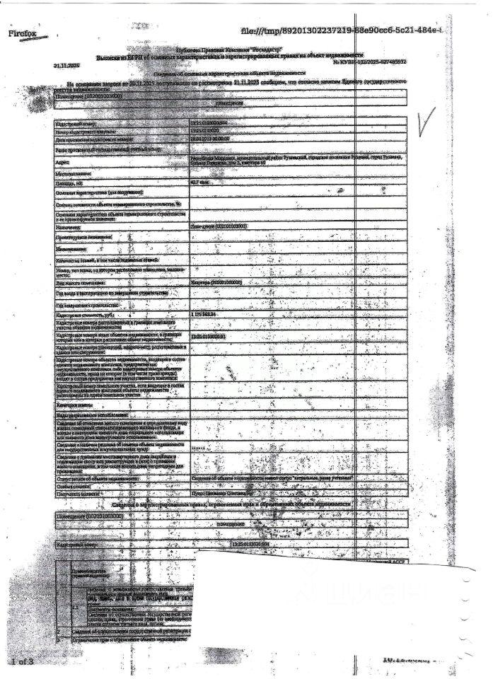 Жилое помещение (квартира) общей площадью 42,7 кв.м., кад. 13:25:0103020:904, находящаяся в пределах объекта недвижимости с кад. 13:25:0103020:91, принадлежащее должнику Захаровой С.В. Зарегистрирован один гражданин. Сведениями о фактическом состоянии объекта недвижимости, о задолженности по коммунальным платежам и взносам на капитальный ремонт, организатор торгов не располагает. Техническая документация на объект недвижимости и его фотографии отсутствуют у организатора торгов.