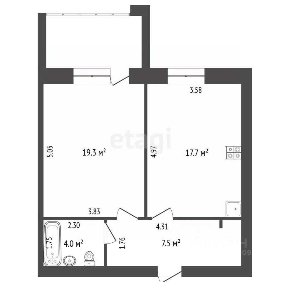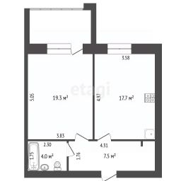 Общая площадь квартиры 44,9 кв. м. Санузел совмещенный, кухня площадью 18 кв. м. Наличие лоджии добавляет объекту функциональности. Квартира в черновой отделке, поэтому дает новому владельцу полную свободу для реализации индивидуального дизайн-проекта без затрат на демонтаж. Не угловая.