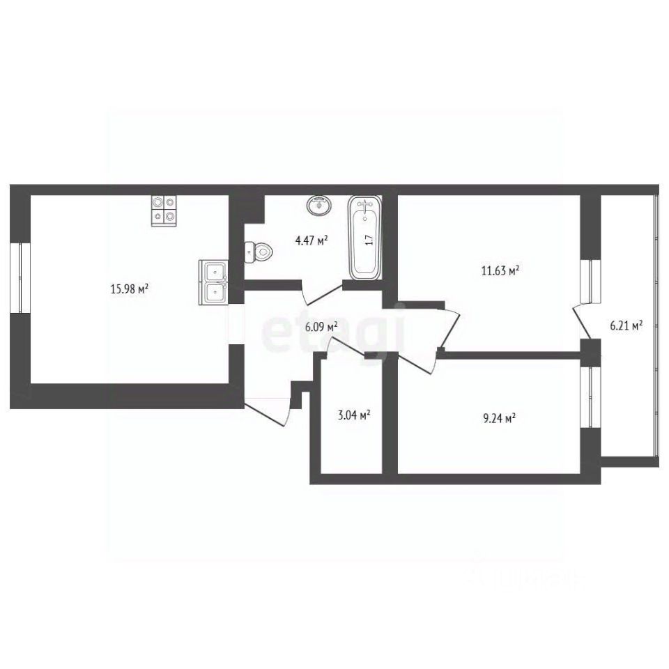 Пространство оптимально организовано: кухня площадью 16 кв. м, комнаты 11.6 и 9.2 кв. м, а также наличие кладовой комнаты для хранения. Балкон площадью 6.2 кв. м станет местом отдыха для членов семьи или дополнительным местом для вещей. Отсутствие мебели является преимуществом, позволяя новым владельцам воплотить собственные интерьерные решения без дополнительных затрат на демонтаж.