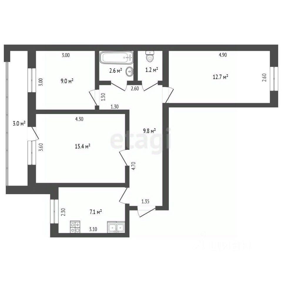 Продается просторная трехкомнатная квартира площадью 57,8 кв. м в кирпичном доме на улице Гагарина.
