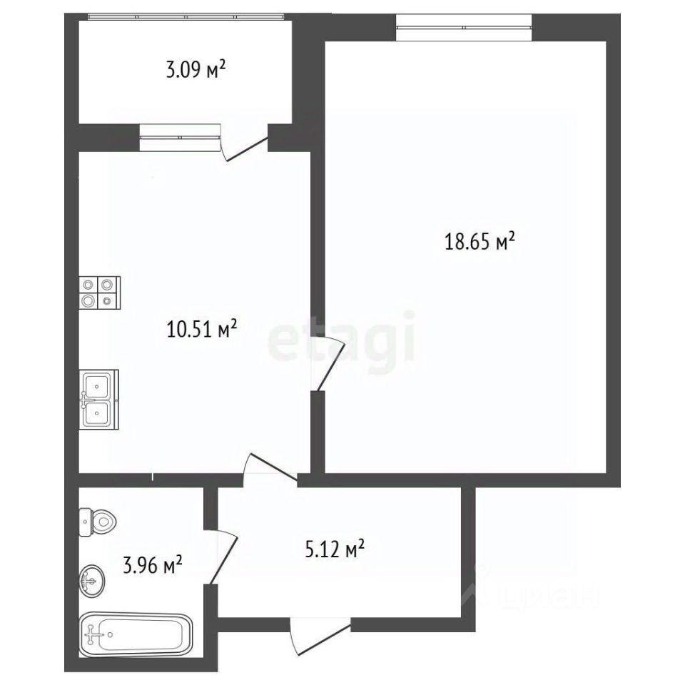 Планировка: просторная изолированная комната 18 кв. м. Кухня 10 кв. м с выходом на лоджию.