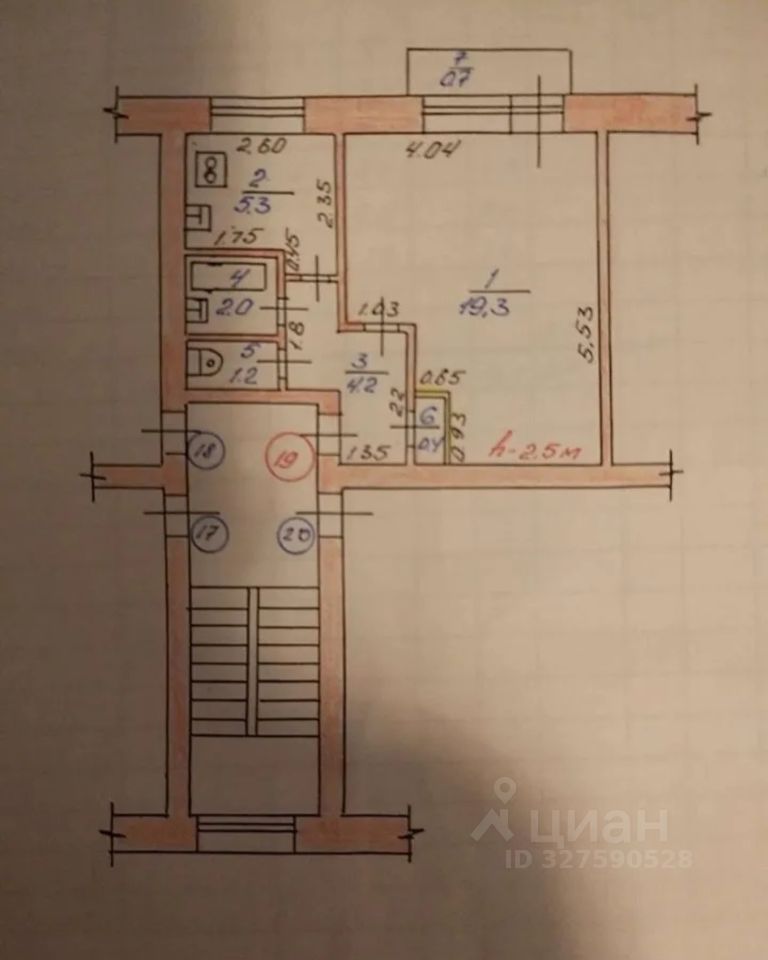 5,3 м²