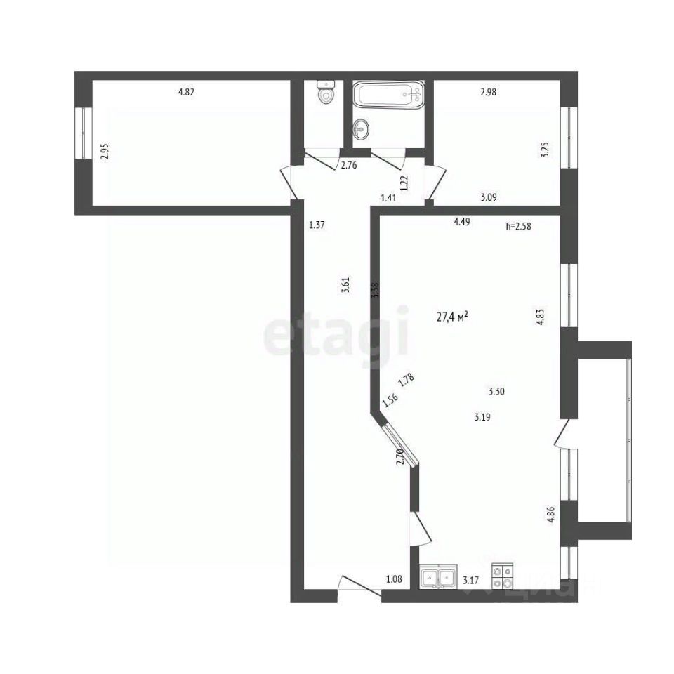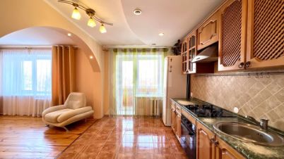 Планировка распашная, что гарантирует хорошую инсоляцию и сквозное проветривание. Пространство организовано рационально: изолированные комнаты площадью 12,5 и 15,5 кв. м, а также объединенная кухня-гостиная 27 кв. м, которая служит центром квартиры. Дополнительную полезную площадь предоставляет застекленная лоджия. В квартире установлены металлическая входная дверь и пластиковые окна, стены выровнены, санузел совмещенный.