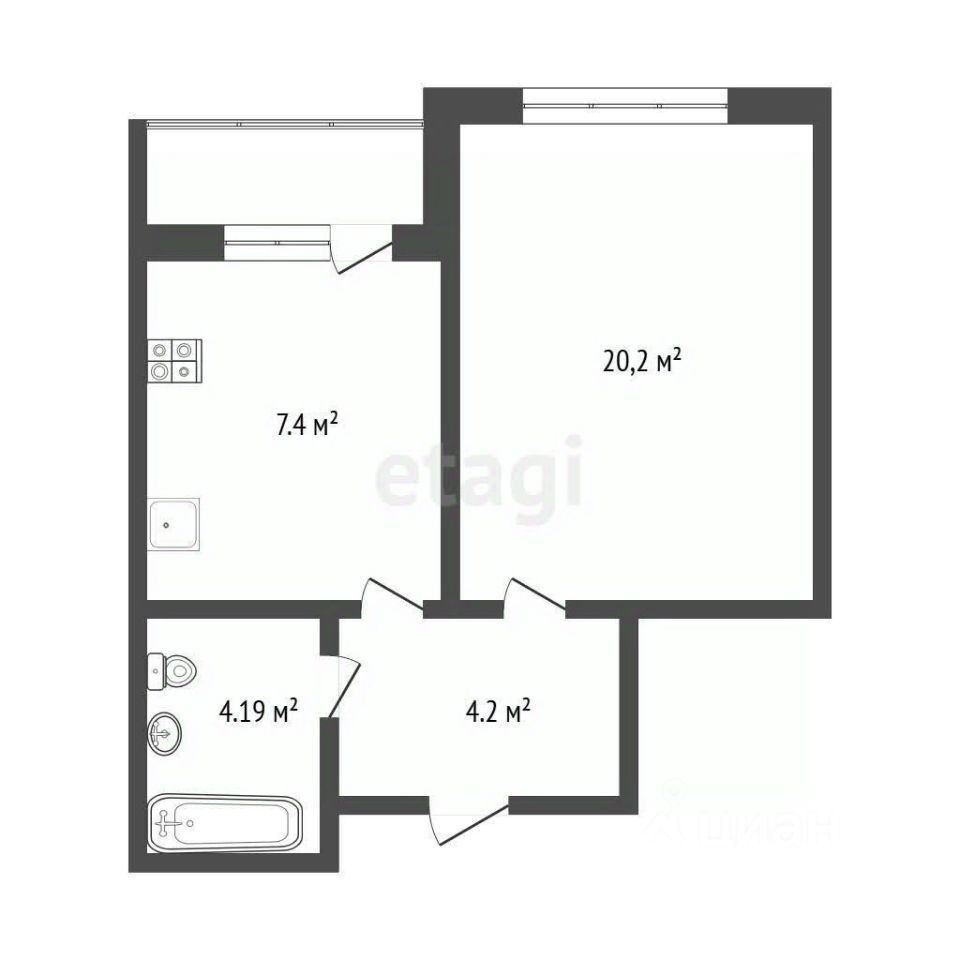 7,4 м²