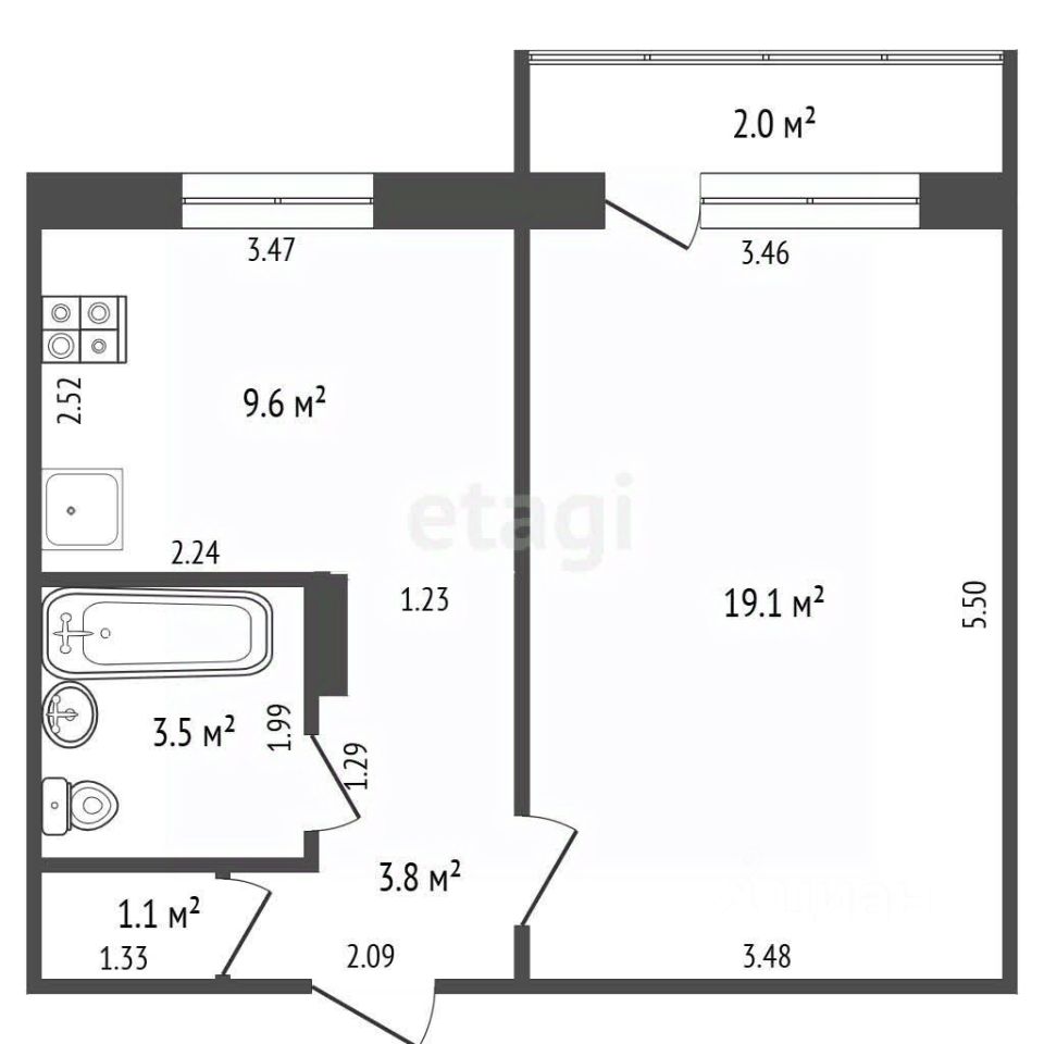 9,6 м²