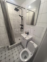 В санузле установлен душевой поддон из керамогранита, предусмотрено место под стиральную машину, установлена качественная вытяжка. В квартире полностью заменены полы, электрика и сантехника, выполнена стяжка, уложен керамогранит и ламинат, продумано зонированное освещение и удобное расположение розеток.
