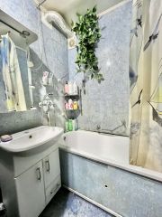 Общая площадь 45,9 м². Кухня просторная — 7,5 м², объединена с балконом. Санузел раздельный. В квартире выполнен косметический ремонт.