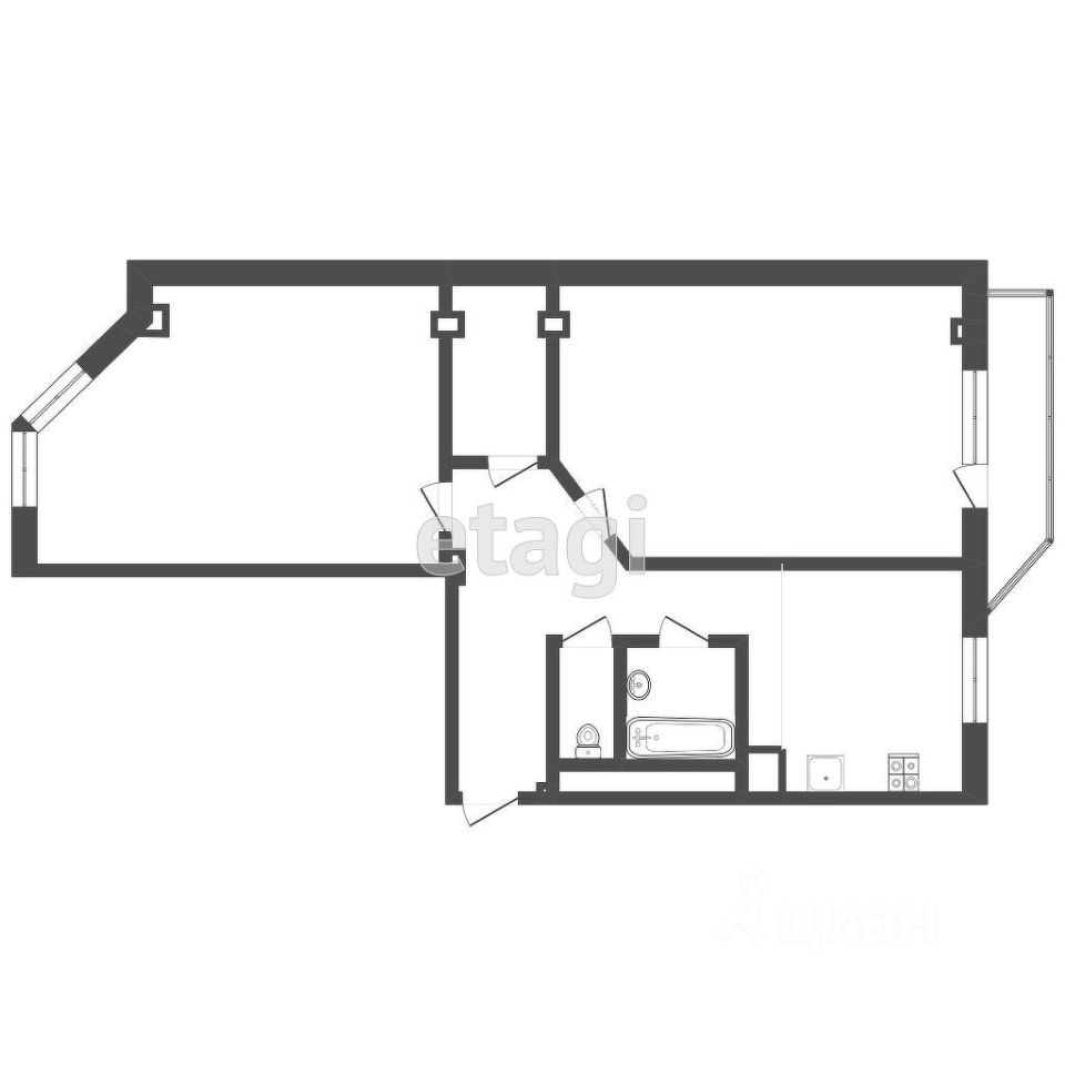 Общая площадь квартиры составляет 74,1 кв. м (без учета балкона 4 кв. м). Кухня площадью 11 кв. м, изолированные комнаты 23 и 19,5 кв. м, с окнами, выходящими на разные стороны. Санузел раздельный.