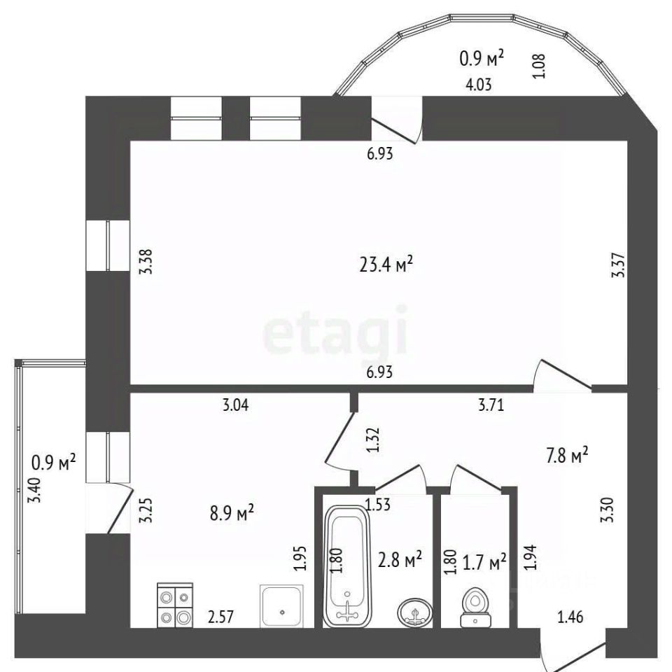 Кирпичный дом 2012 г., площадь 44,6 м. кв., площадь кухни 8,9 м. кв., санузел раздельный в кафеле, входная металлическая дверь, балкон из кухни и второй балкон из комнаты, установлены пластиковые окна, на полу линолеум.