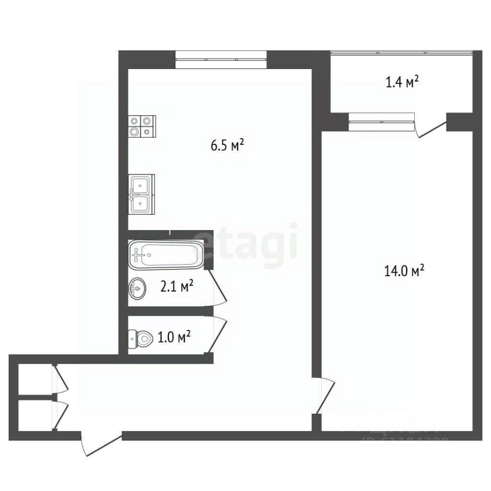 • Практичная и уютная планировка: изолированная комната, кухня, прихожая, раздельный санузел, балкон;
