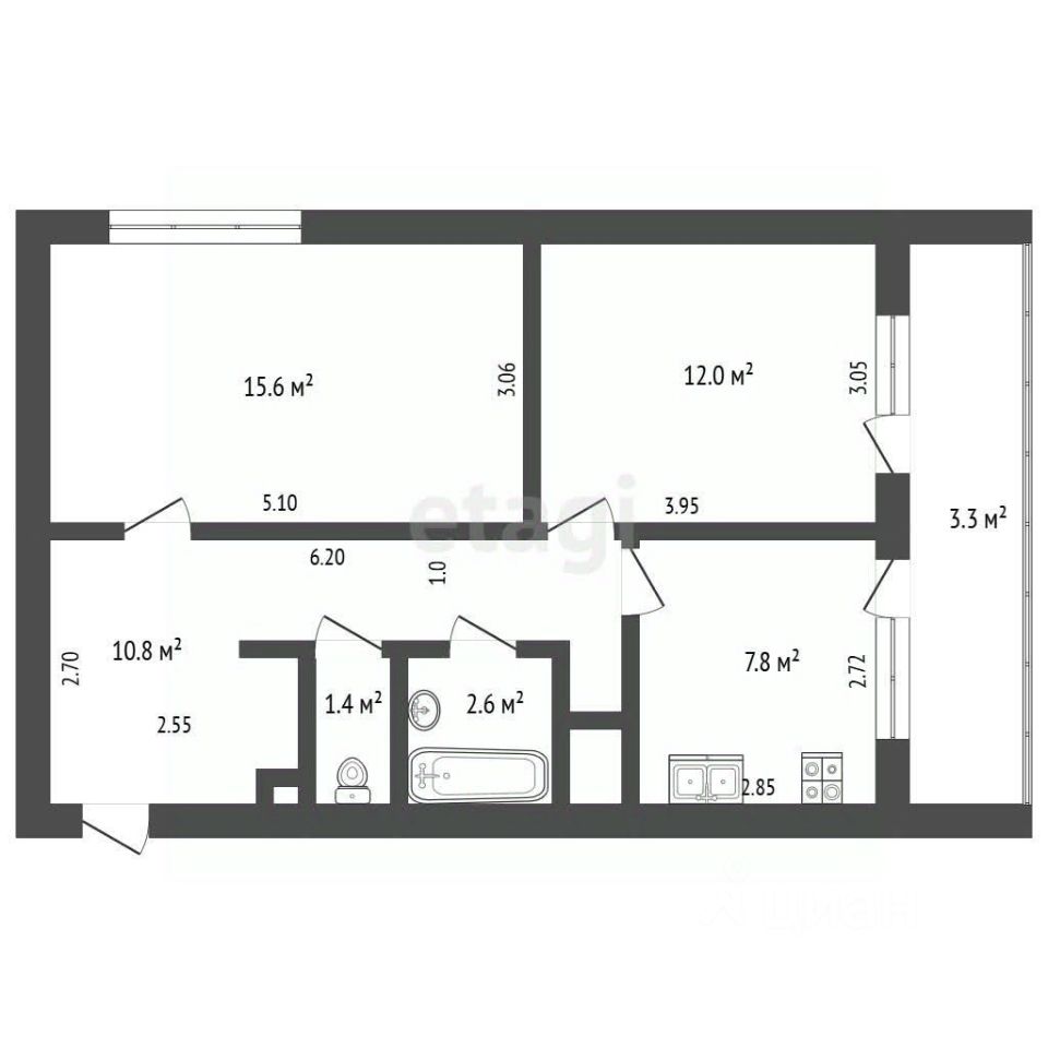 общая площадь — 50,2 м