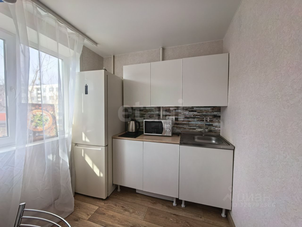 В квартире сделан современный ремонт. Заменена вся проводка, установлен новый распределитель фаз. Есть балкон, застеклен алюминиевыми окнами. Кухня 6 кв. м. Санузел совмещен. Стены обложены современной кафельной плиткой, установлена влагостойкая дверь. На кухне установлен кухонный гарнитур, под столешницей размещена стиральная машина. Заменены все трубы и стояки. Полы деревянные.