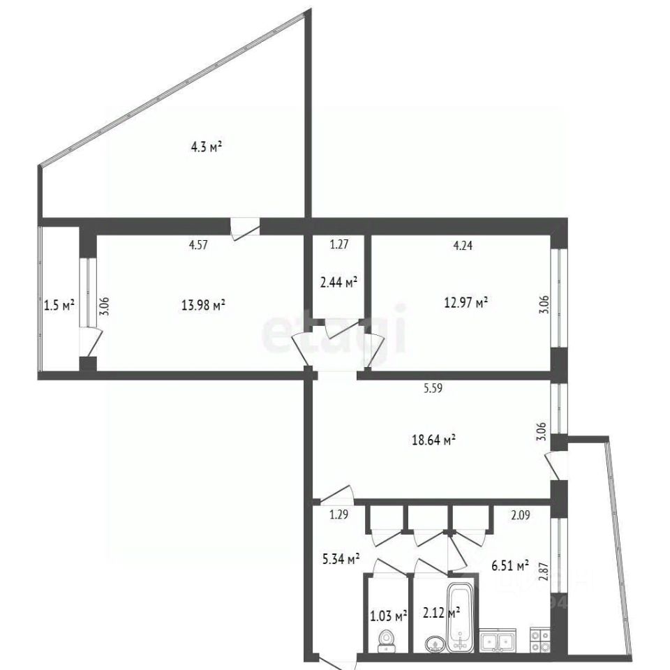 Удобная планировка позволяет грамотно использовать пространство: в квартире есть кладовая для хранения, раздельный санузел и сразу несколько дополнительных зон — два балкона и лоджия.