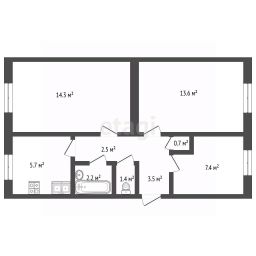 Квартира расположена на 2-м этаже 2-этажного кирпичного дома 1975 года постройки. Ремонт крыши, ремонт и утепление фасадов, ремонт теплоснабжения был произведен в 2009 году. Отопление центральное. Угловая (теплая). На лестничной площадке 2 квартиры. Окна на обе стороны дома. Общая площадь 51,5 кв.м. Кухня 5,7 кв.м.(газовая колонка). Спальня 1 — 7,4 кв.м. Спальня 2 — 13,6 кв.м. Гостинная — 14,3 кв.м. Санузел раздельный. Высота потолков — 2,5 м.