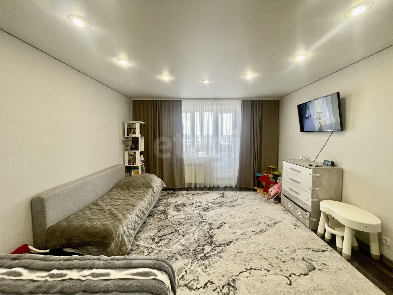 Во всех комнатах сделан ремонт, потолки натяжные, на полу линолеум.