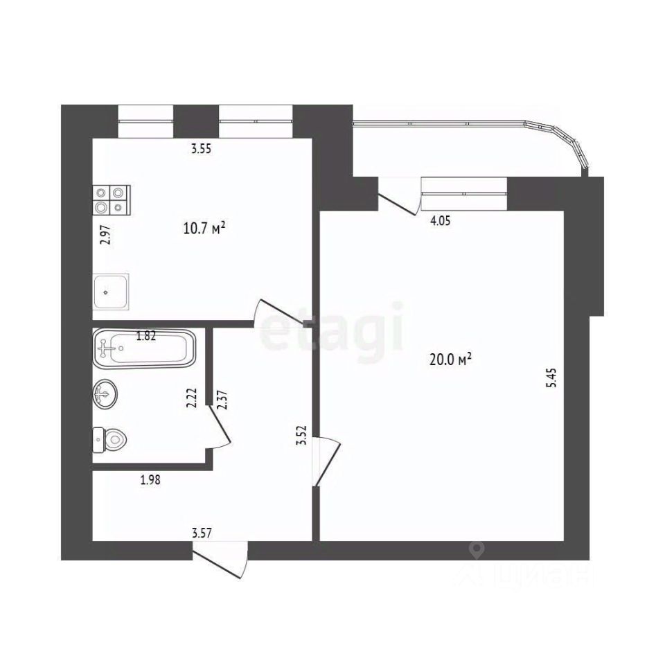 Квартира улучшенной планировки, общая площадь 44,4 м.кв.