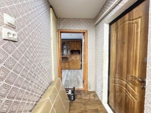 Дом пятиэтажный, кирпичный. Общая площадь квартиры 33,2 кв. м включает уютную комнату 17,1 кв. м и кухню 6,5 кв. м. В квартире выполнен аккуратный косметический ремонт: натяжные потолки, ламинат в комнате и линолеум на кухне. Пластиковые окна выходят на солнечную сторону, наполняя пространство светом.