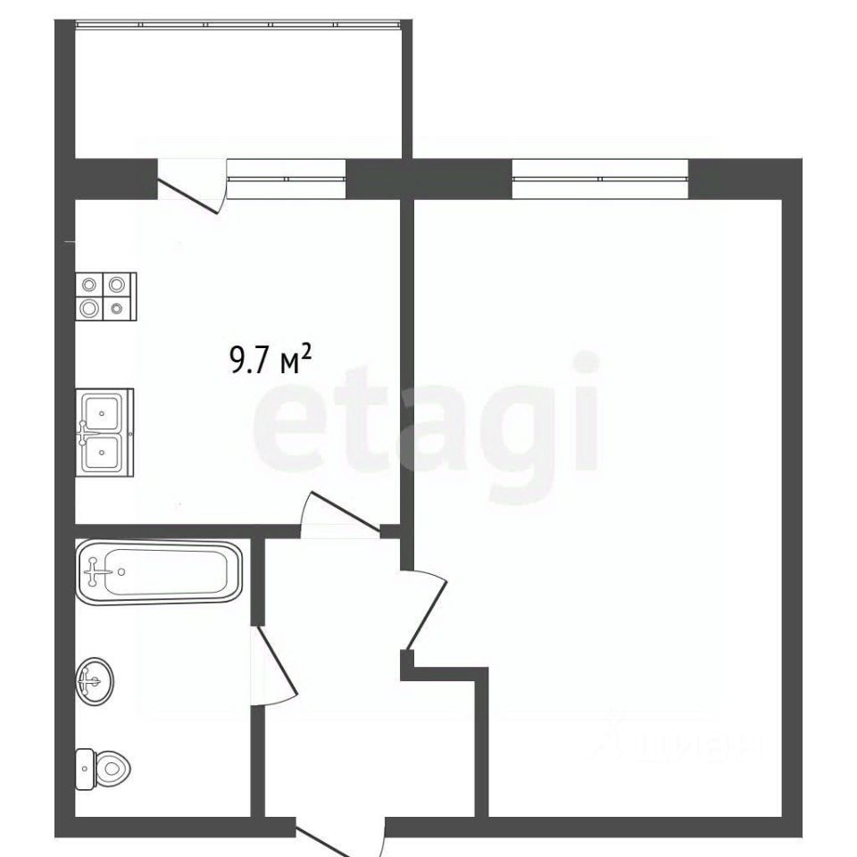 В квартире выполнен современный качественный ремонт. Жилая площадь — 19.1 м2, кухня — 9.7 м2. Санузел совмещённый.