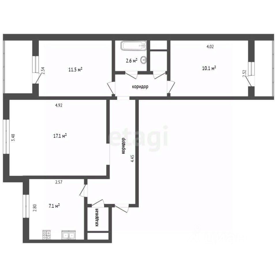 Планировка практичная и продуманная: все комнаты изолированные. Есть кладовая — можно сделать гардеробную или увеличить кухню. Санузел раздельный, ванная комната с теплыми полами и современной плиткой, туалет — инсталляция и современный ремонт.