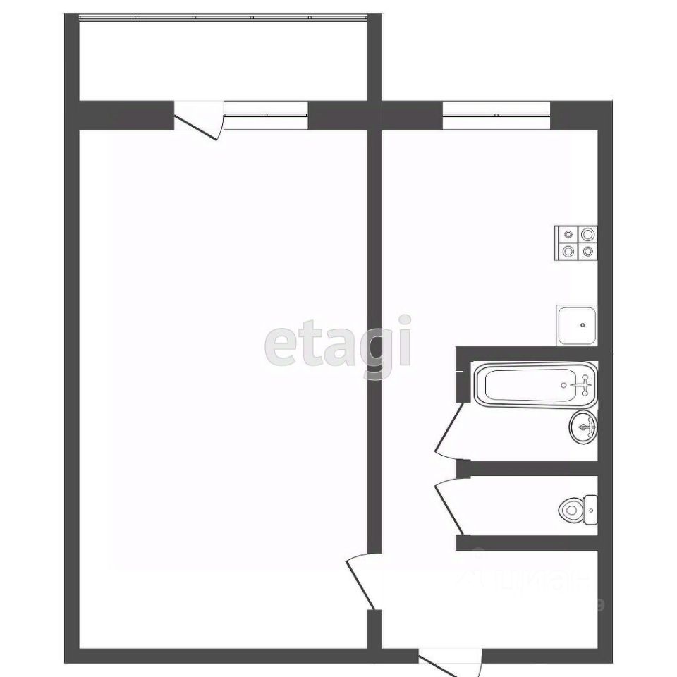 Общая площадь 32,7 кв. м., кухня 6,8 кв. м., комната 14 кв. м., балкон. Санузел раздельный. Окна выходят на восток. Не угловая. Отопление центральное.