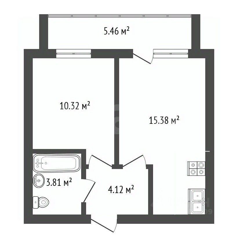 жилая комната 10,32 кв.м., лоджия 5,46 кв.м. Санузел совмещённый.