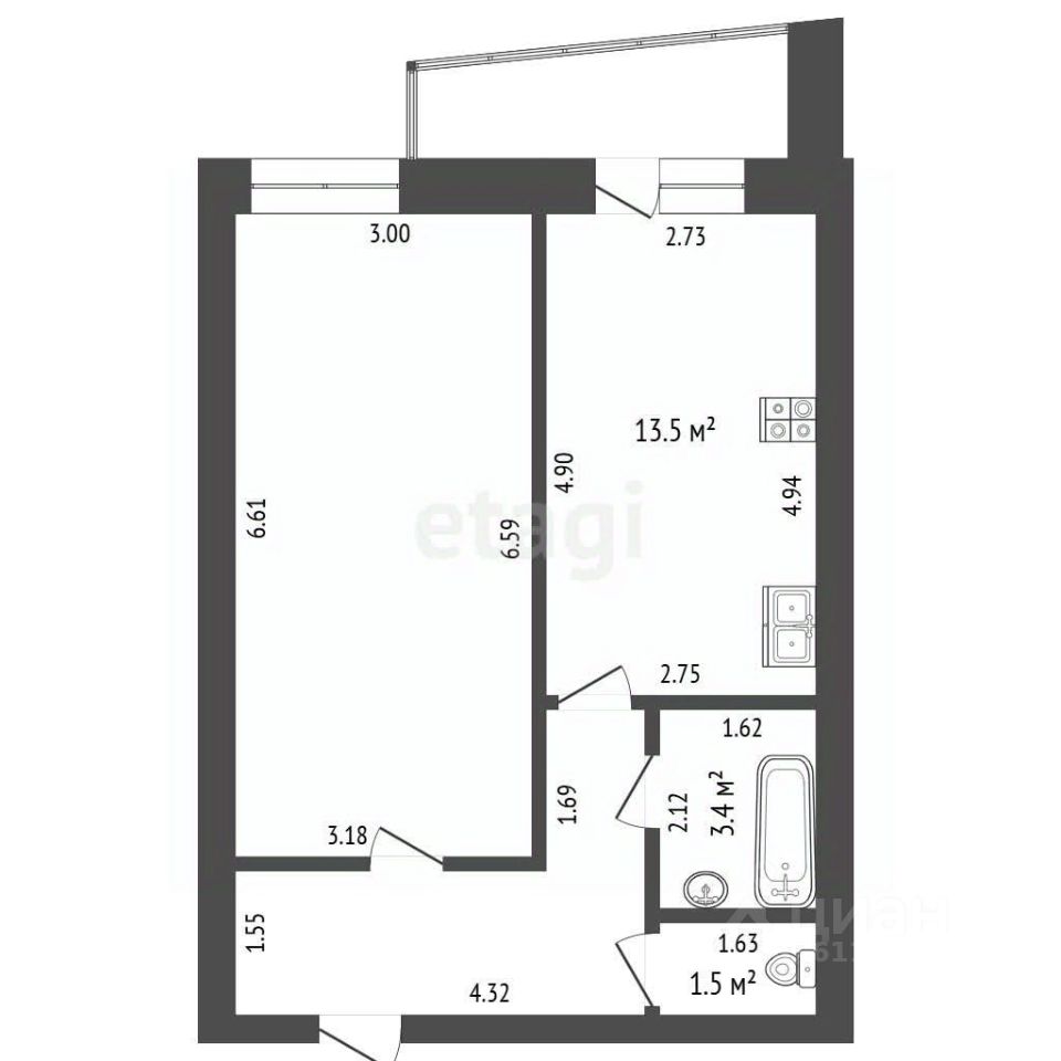 Квартира улучшенной планировки, общая площадь 47,6 м.кв.