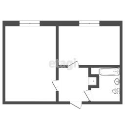 Общая площадь квартиры 33.8 кв.м. Просторная кухня, 11.1 кв.м., комната 16.9 кв.м.