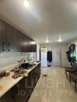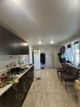 В жилой части (70 кв м ) - 2 большие комнаты + кухня + санузел + прихожая, большой навес на 2 автомобиля, гараж, вторая часть- 74 кв м свободной планировки