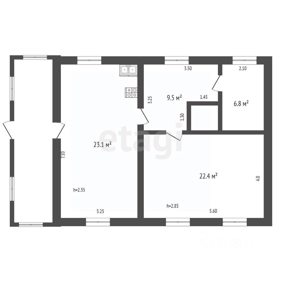 Дом бревенчатый и кирпичный пристрой площадью 61,8 кв. м., состоит из кухни и трех жилых комнат. Дом подходит как для круглогодичного проживания, так и для летней дачи. Газ и свет заведены. Вода и канализация централизованные, можно организовать санузел без особых затрат. Круглогодичный подъезд, улица полностью жилая. Имеется баня и различные хозяйственные постройки.