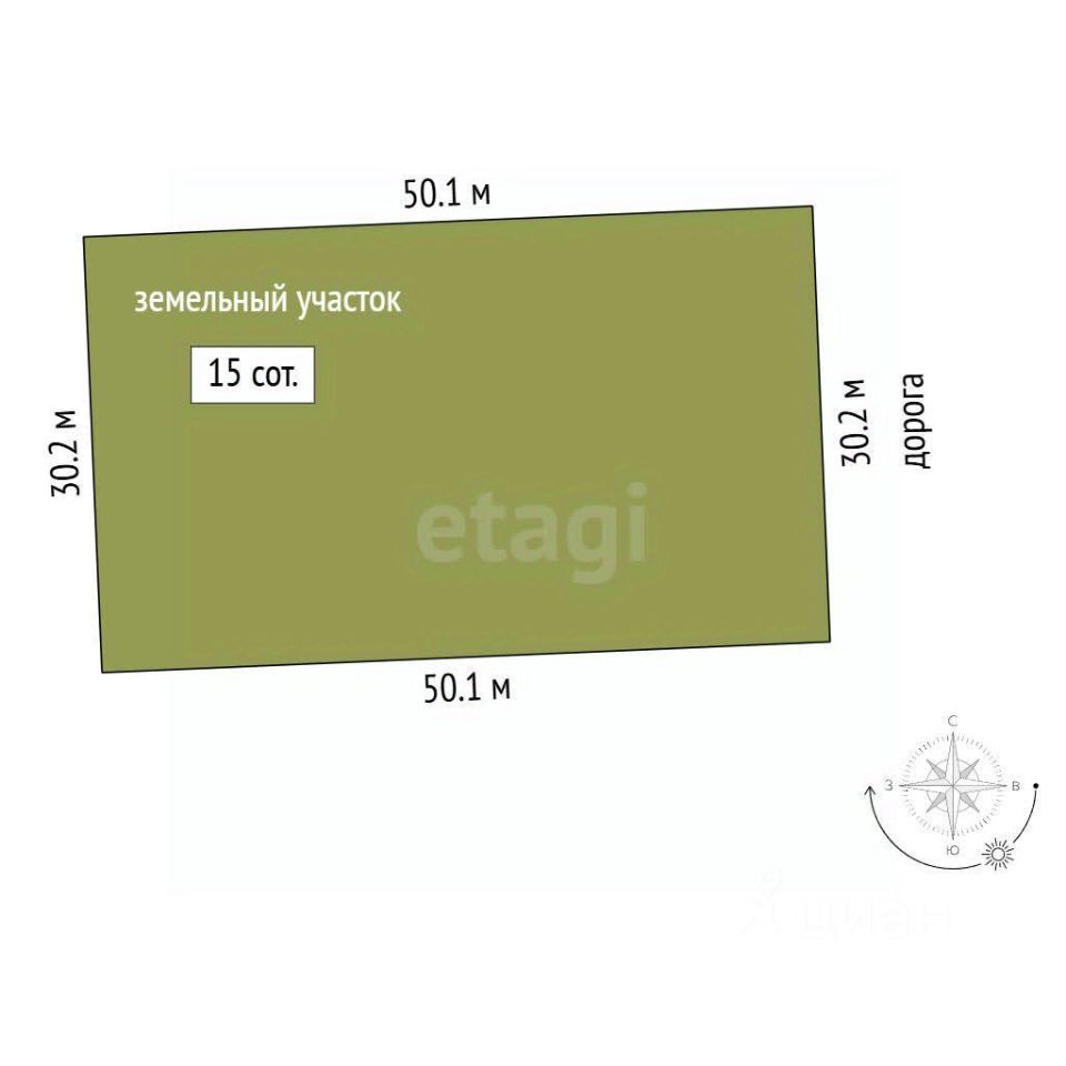 Участок 15 соток, ровный, правильной формы.