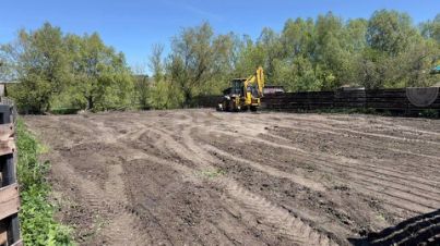 Несколько раз приезжал трактор, выравнивали всю территорию под уровень в ноль.