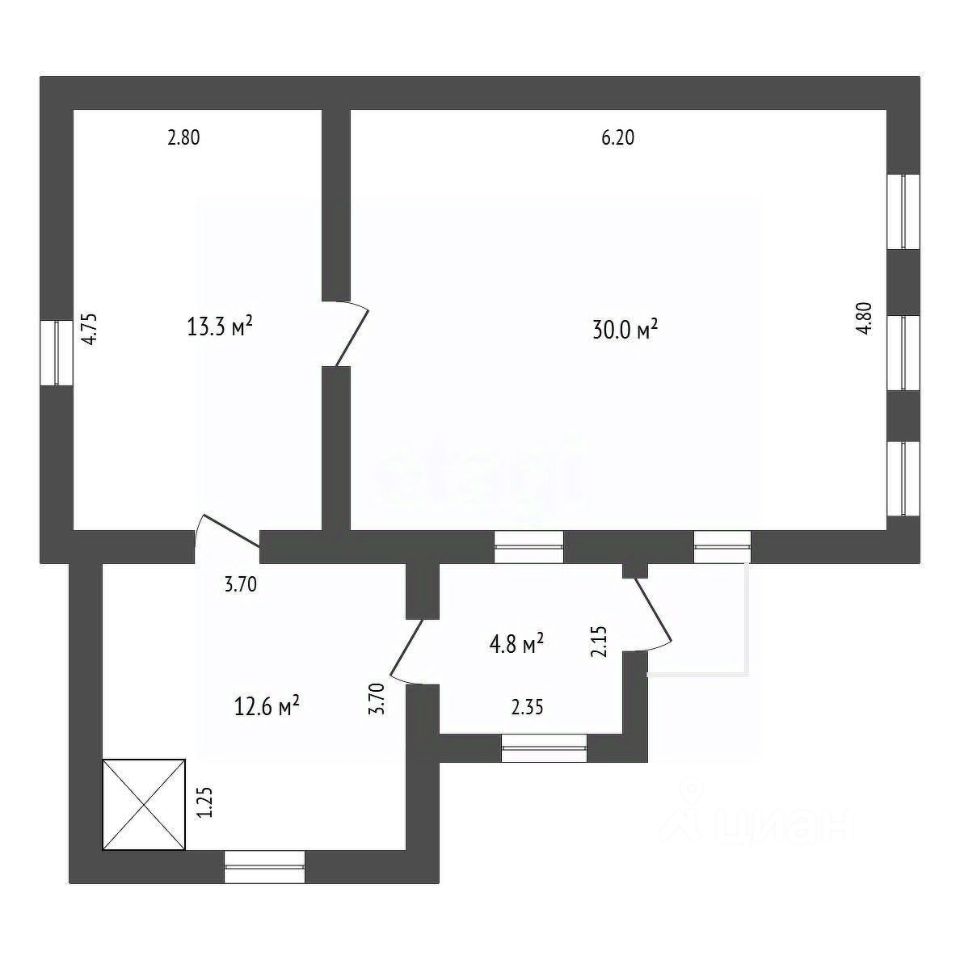 Продается кирпичный дом площадью 64 кв. м на собственном участке.