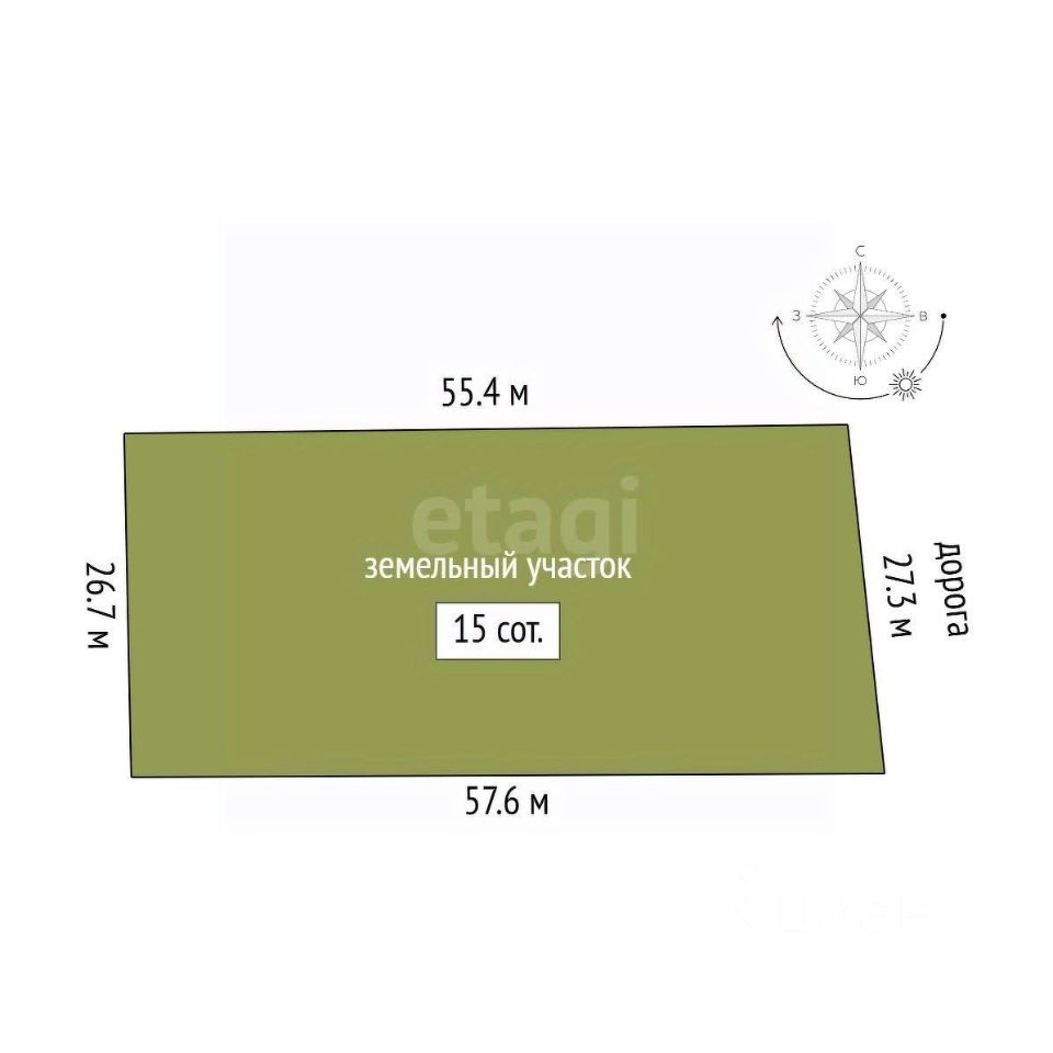 Земельный участок площадью 15 соток расположен в селе Танеевка, в 15 минутах езды на автомобиле от городской черты.