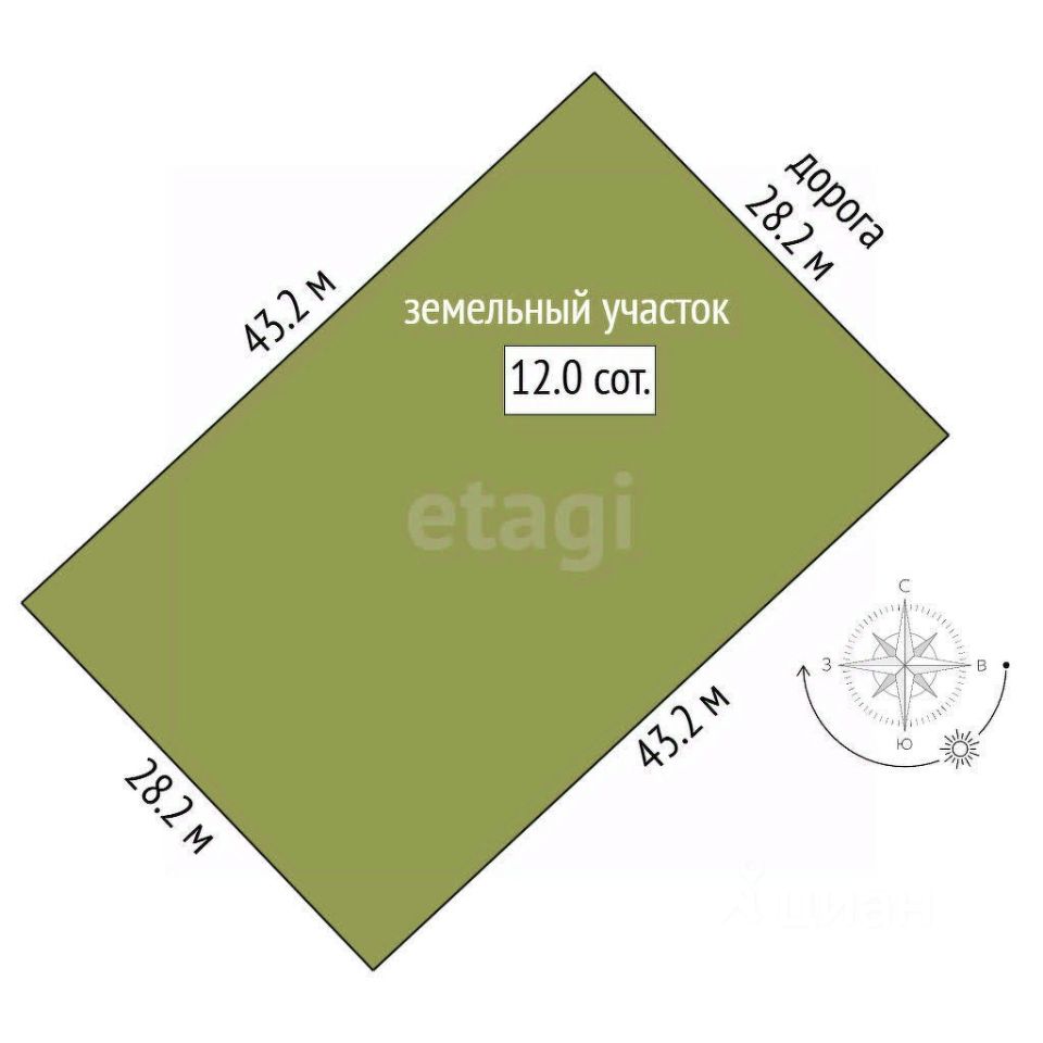 Участок 12,5 соток, правильной прямоугольной формы.
