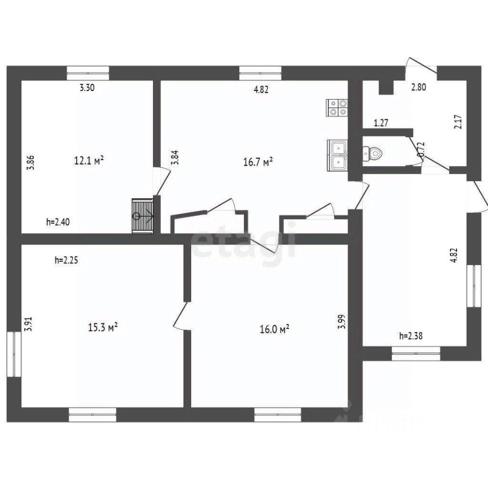 В доме три комнаты и кухня, сделан косметический ремонт, все окна пластиковые, на полу линолеум.
