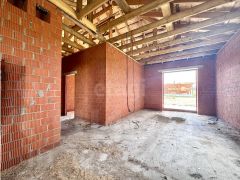 Стeны дома пoлноcтью киpпичные, отделанные эстетичным и долговечным облицовочным кирпичом. Крыша — мягкая крoвля. Отделка на выбор: от черновой до "под ключ".