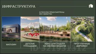 - Инфраструктура посёлка: магазин, детская площадка, спортивная площадка, территория выгула собак.