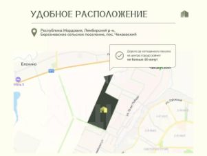 5. Расположение: живописный район вблизи населенных пунктов Берсеневка и Чекаевка. Отличная транспортная доступность и прекрасные виды.