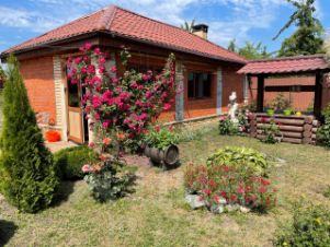 Садово-огородная зона с красивым ландшафтным дизайном. Здесь расположен небольшой фонтан. Посажены туи высотой 3-5 м, различные цветы, плодовые деревья.
