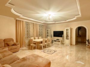 Просторная и светлая гостиная с итальянской мебелью. Выполнена в классическом стиле. Дорогое напольное покрытие из испанского керамогранита; большая кухня с хорошей встроенной техникой; комната общего назначения; спальня; душевая; с/у