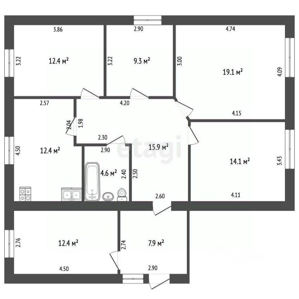 Площадь и планировка: 3 спальни, светлая гостиная, большая кухня, летняя комната (может служить столовой или кабинетом), совмещенный санузел.