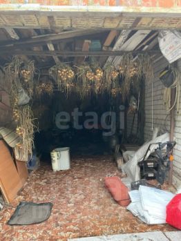 В доме две комнаты и оборудованная кухня. Есть две веранды, летняя и закрытая. Большой хозблок с инструментом и техникой. Пристроен к дому кирпичный гараж с погребом. Колодец с насосом обеспечивает водой. Газ проходит по границе участка, но в дом не заведен, электричество есть.